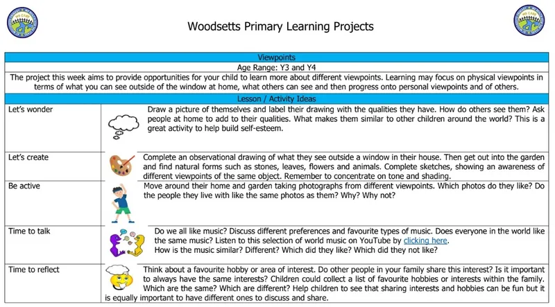 As some families and children may prefer to follow a more project based approach to learning, we have created a folder in the Google Drive called "Learning Projects". The aim is for these to have a range of activities and experiences for the children to have a go at linked to a theme. There will be a project for Key Stage 1 (Y1&2), Lower Key Stage 2 (Y3&4) and Upper Key Stage 2 (Y5&6) and the projects for each phase will have the same theme to help families with children in different year groups. Each week, a new project will be uploaded and will also include some suggested additional learning activities to help the children. These were well received during the last lock down and so we have started to add new projects to the folder to help.